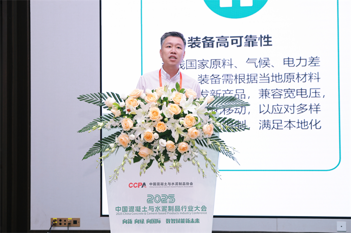 在第四屆中國(guó)混凝土與水泥制品行業(yè)共建“一帶一路”高質(zhì)量發(fā)展論壇上,泉工股份副總經(jīng)理傅國(guó)華發(fā)表《“一帶一路”基建需求下混凝土砌塊裝備技術(shù)全球化解決方案》主題演講。他結(jié)合企業(yè)在東南亞、中東、非洲等地的項(xiàng)目實(shí)踐,分享了“裝備+工藝+服務(wù)”一體化出海模式,提出以模塊化設(shè)計(jì)、遠(yuǎn)程運(yùn)維平臺(tái)和本地培訓(xùn)基地為抓手,幫助海外客戶快速形成高品質(zhì)砌塊生產(chǎn)能力,降低建設(shè)運(yùn)營(yíng)成本,實(shí)現(xiàn)綠色低碳目標(biāo)。報(bào)告得到與會(huì)嘉賓的積極反響。